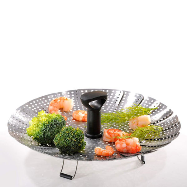 دارای پایههای سیلیکونی تاشو جهت جلوگیری از برخورد با ته قابلمه