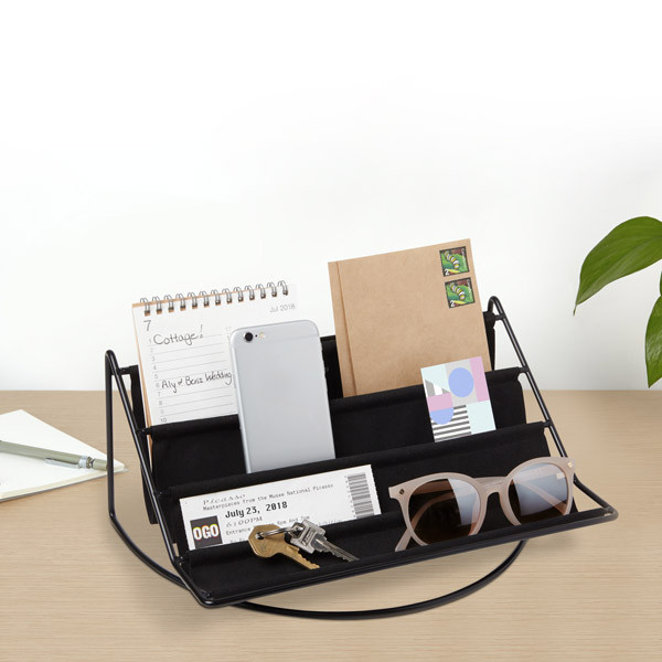 نظم دهنده Umbra دارای جنس پارچهای مشکی رنگ طراحی بصورت جیب و طبقه بندی شده قابل استفاده در ورودیها ، آشپزخانه ، اتاق خواب و... قابلیت نصب بر دیوار امکان قرار دادن عینک آفتابی ، کلید ، شال ، روسری و...